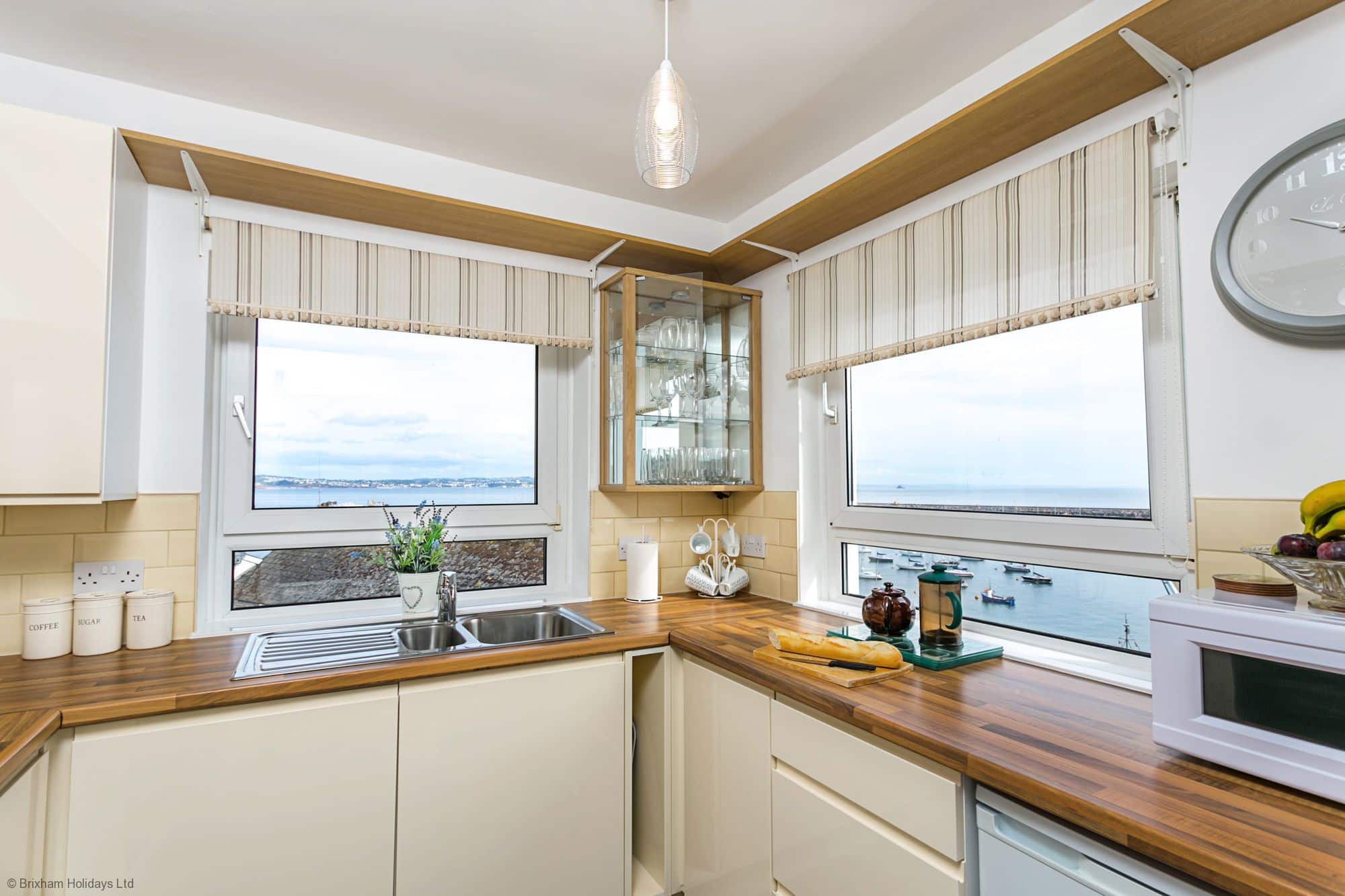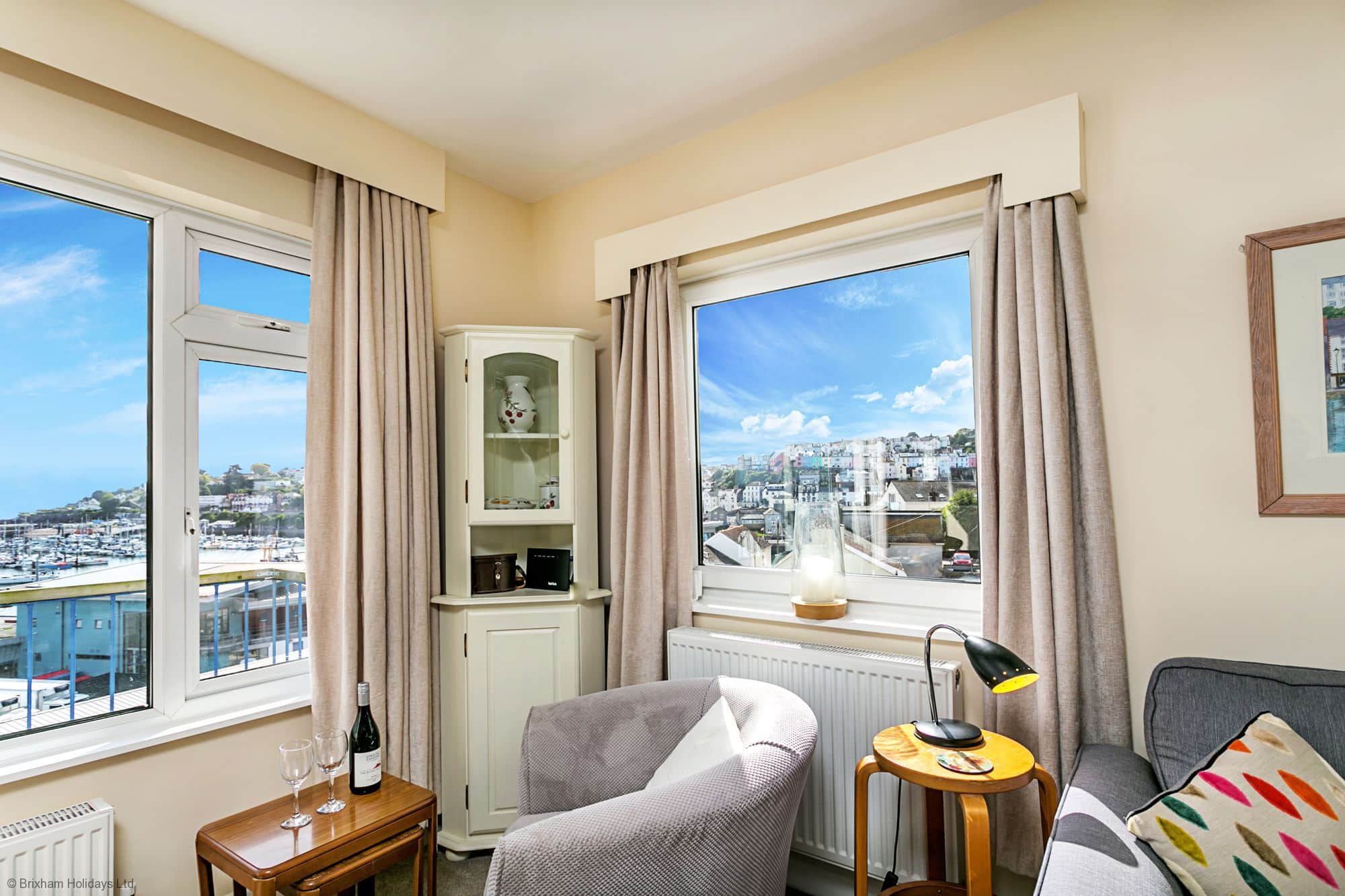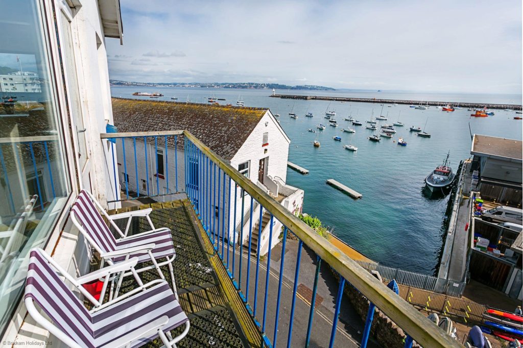 Harbour Views: The balcony provides stunning views of Brixham's iconic fish quay and marina, complete with a pair of chairs to relax and soak in the atmosphere.