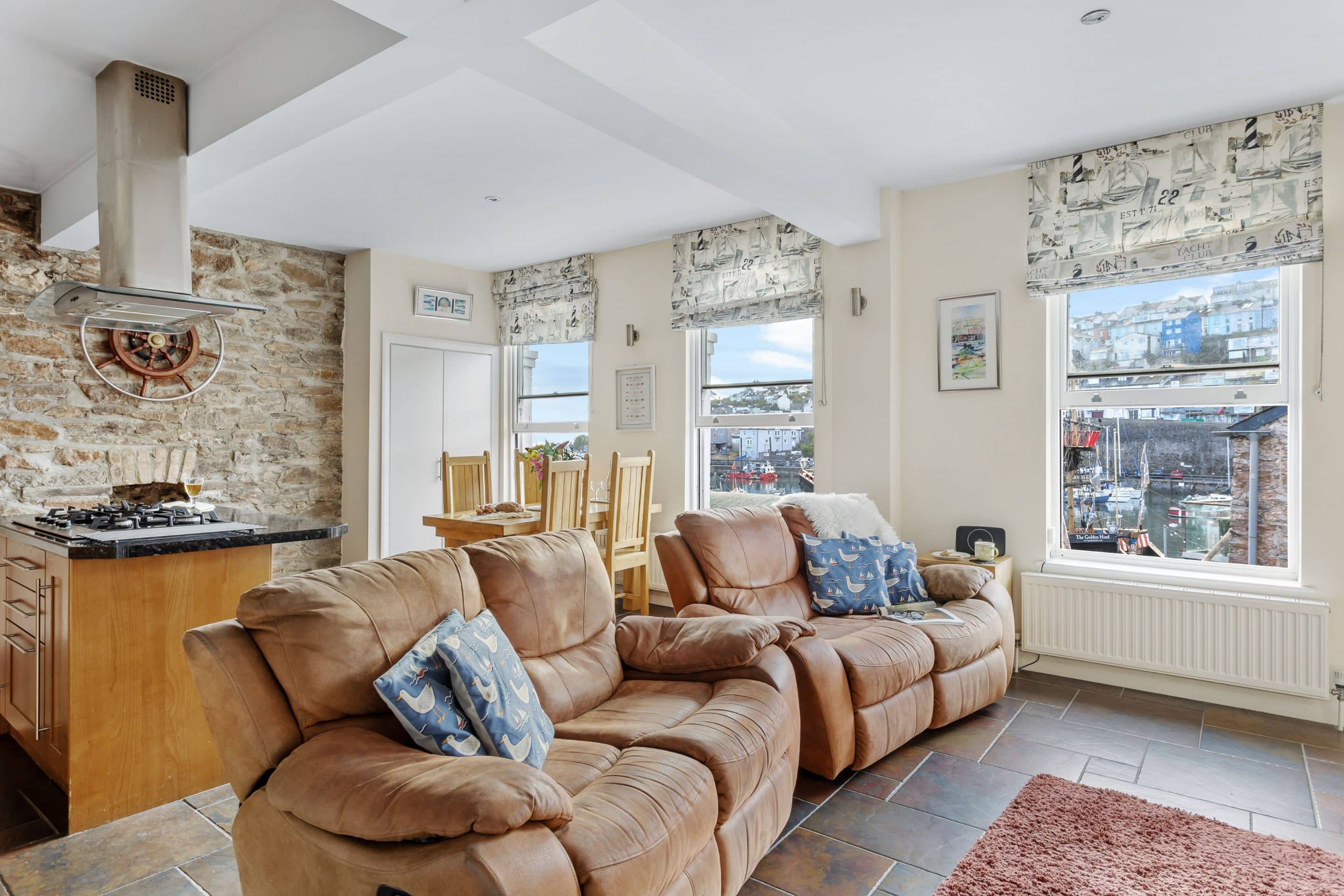 Harbourside is a beautifully finished first-floor apartment, nestled in the heart of Brixham's harbour, offerings stunning views out over the harbour and beyond. Just off King Street, you’ll find an eclectic range of eateries and shops close by. More familiar high street names like Costa co-exist with Brixham businesses such as Hailey's Kitchen and the West Country Deli.