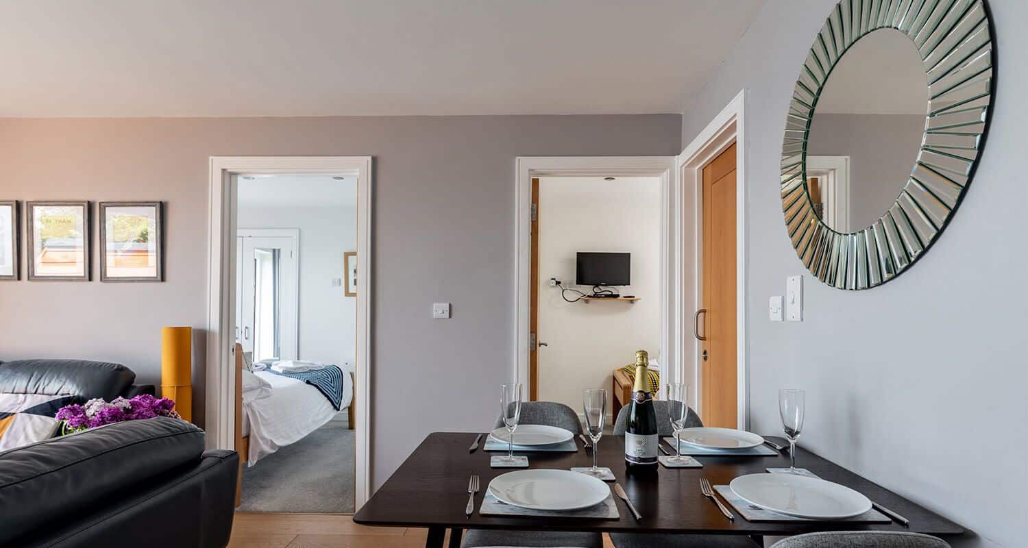 Spacious Interior with Seaside Themes: The apartment is tastefully decorated with a neutral blue-grey scheme, accented by pops of colour and coastal-inspired decor.