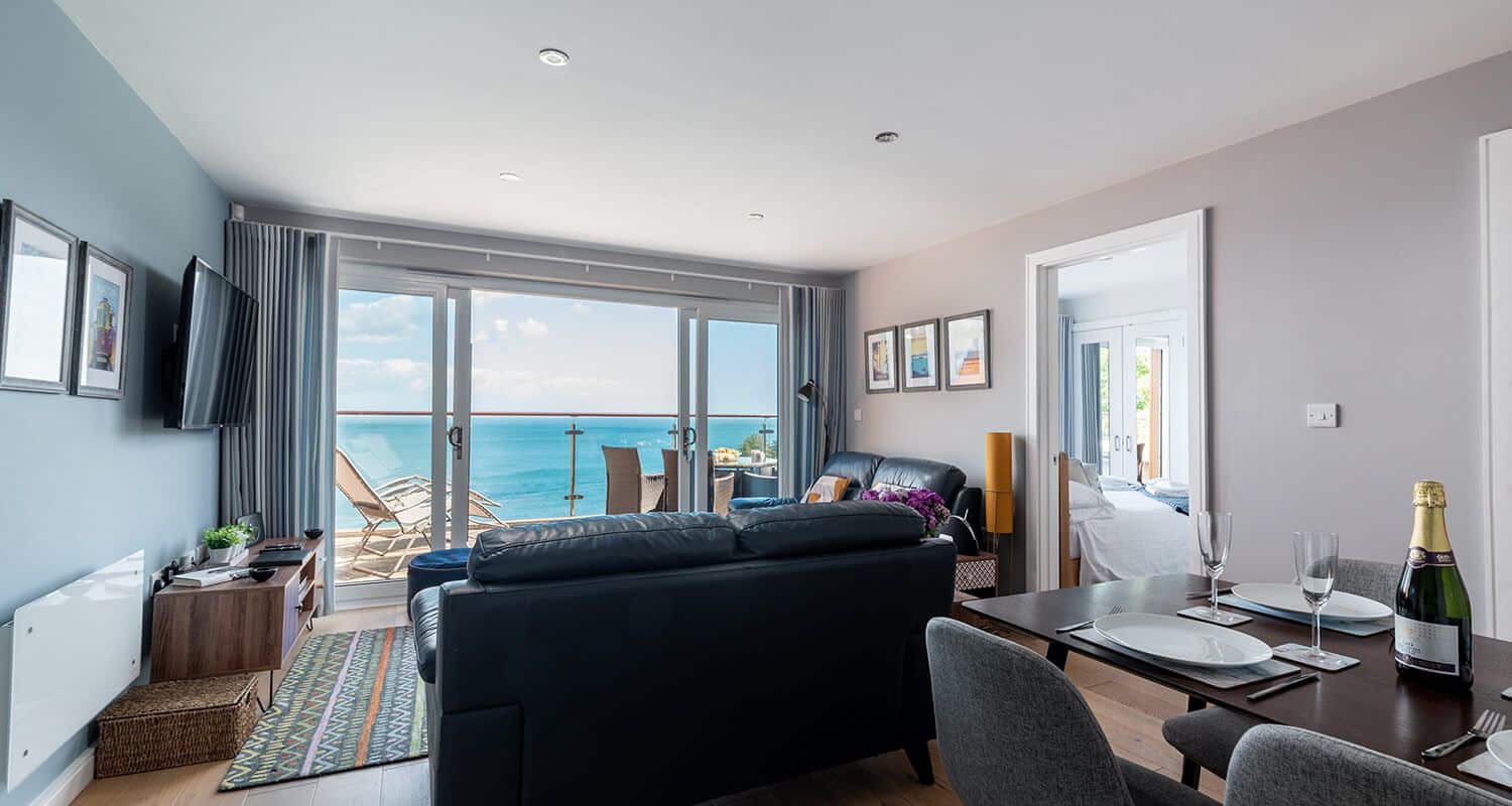 Spectacular Sea and Woodland Views: The glass-front balcony offers uninterrupted views across Torbay and the nearby woodlands. Perfect for enjoying drinks, meals, or simply soaking in the scenery.