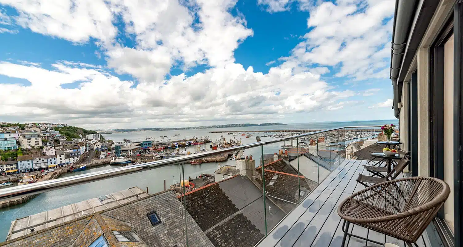 Spectacular Views and Glass Balcony: Enjoy panoramic views of Brixham Harbour from the full-width wood-floored glass balcony, perfect for morning coffee or evening wine.