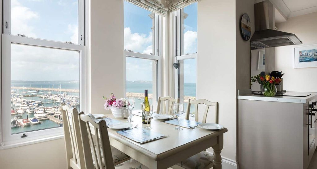 Poppin is a serene two-bedroom apartment, comfortably accommodating up to four guests, with uninterrupted views across Brixham Marina.