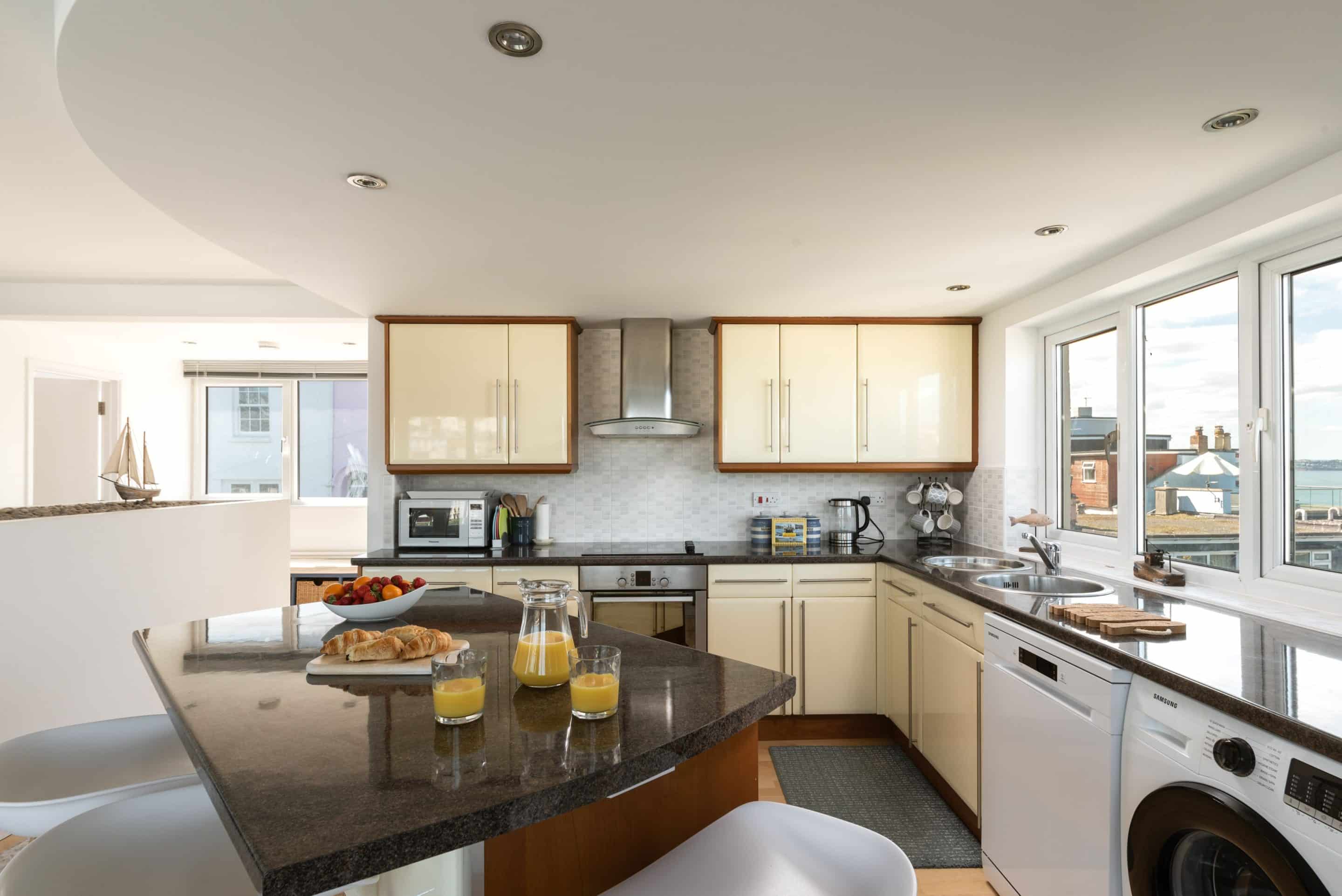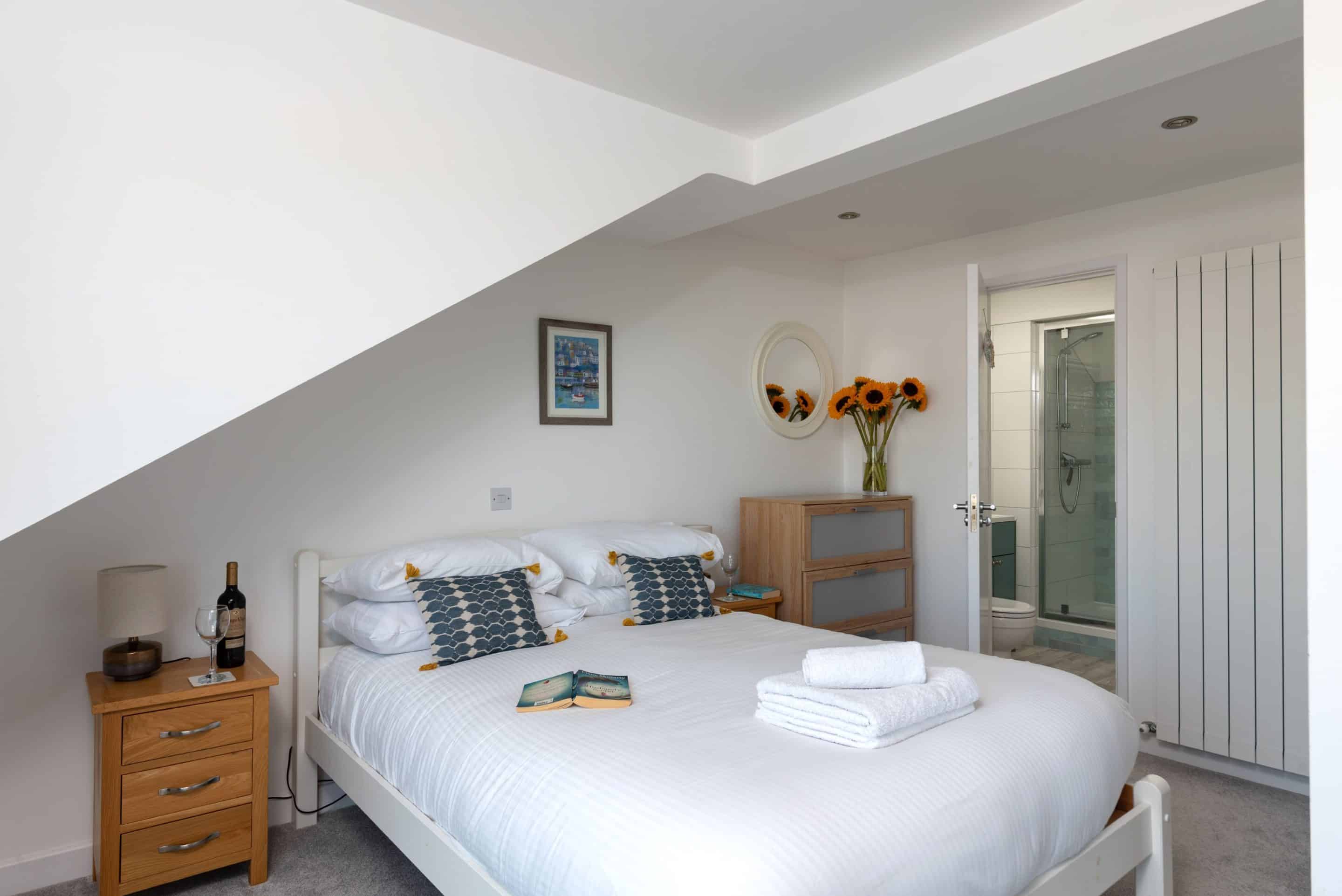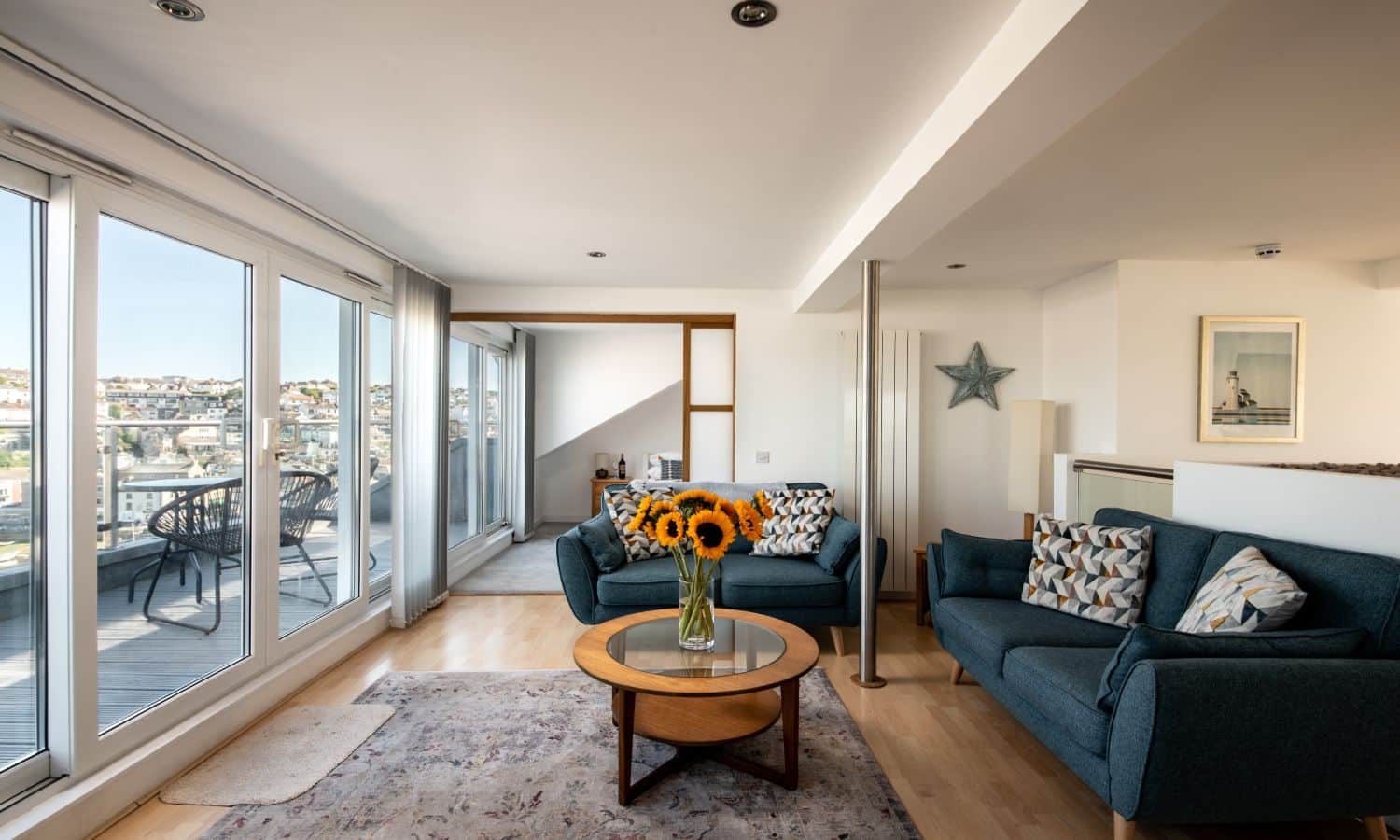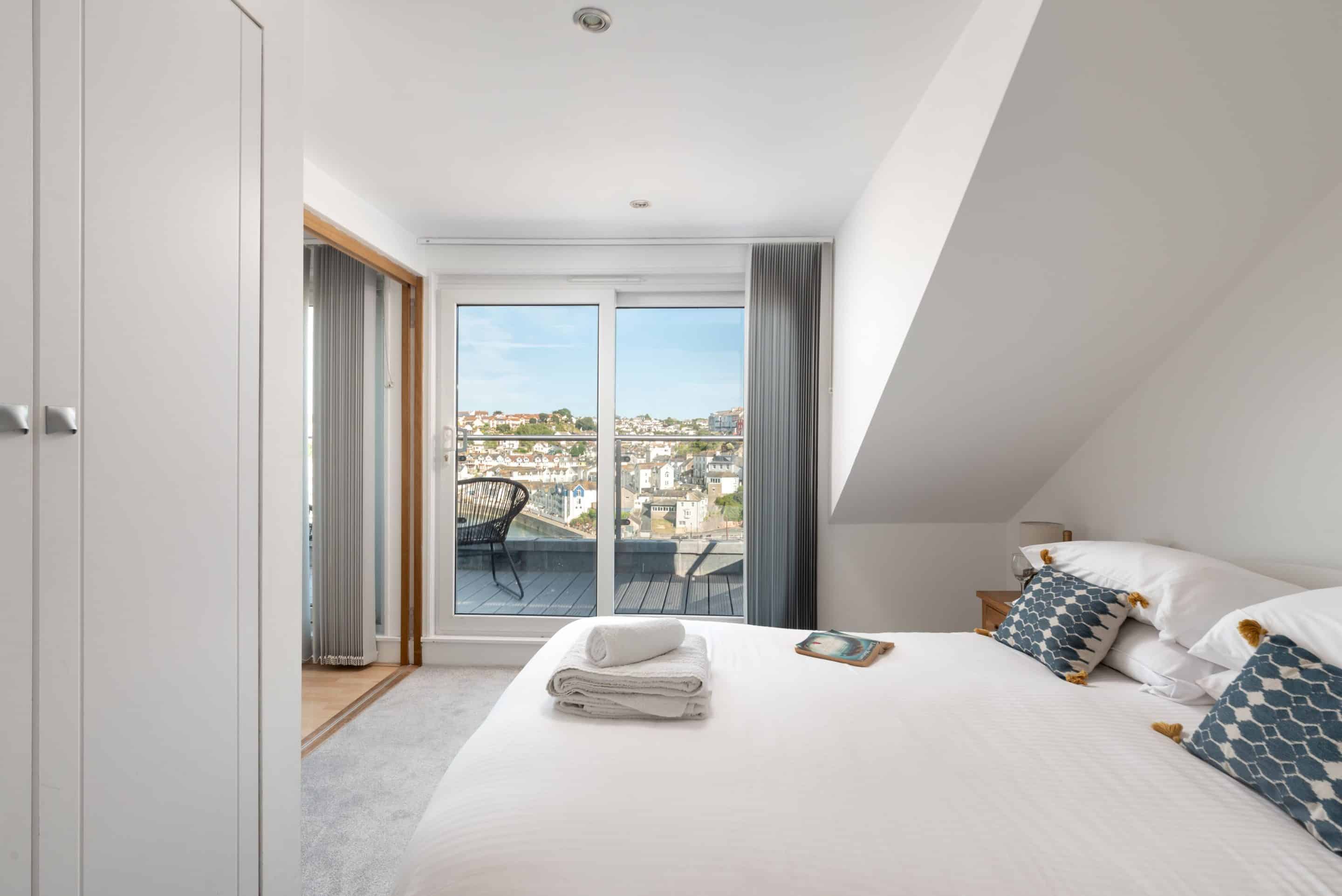 The Penthouse sits in an elevated position, accessed by three flights of stairs, a five-minute walk from the harbour. From here you can access the seasonal ferries including trips across to Torquay and the ‘Round Robin’ tour across the bay. Also, the Quay provides excellent fresh fish for home cooking or meals out at the acclaimed Rockfish restaurant.