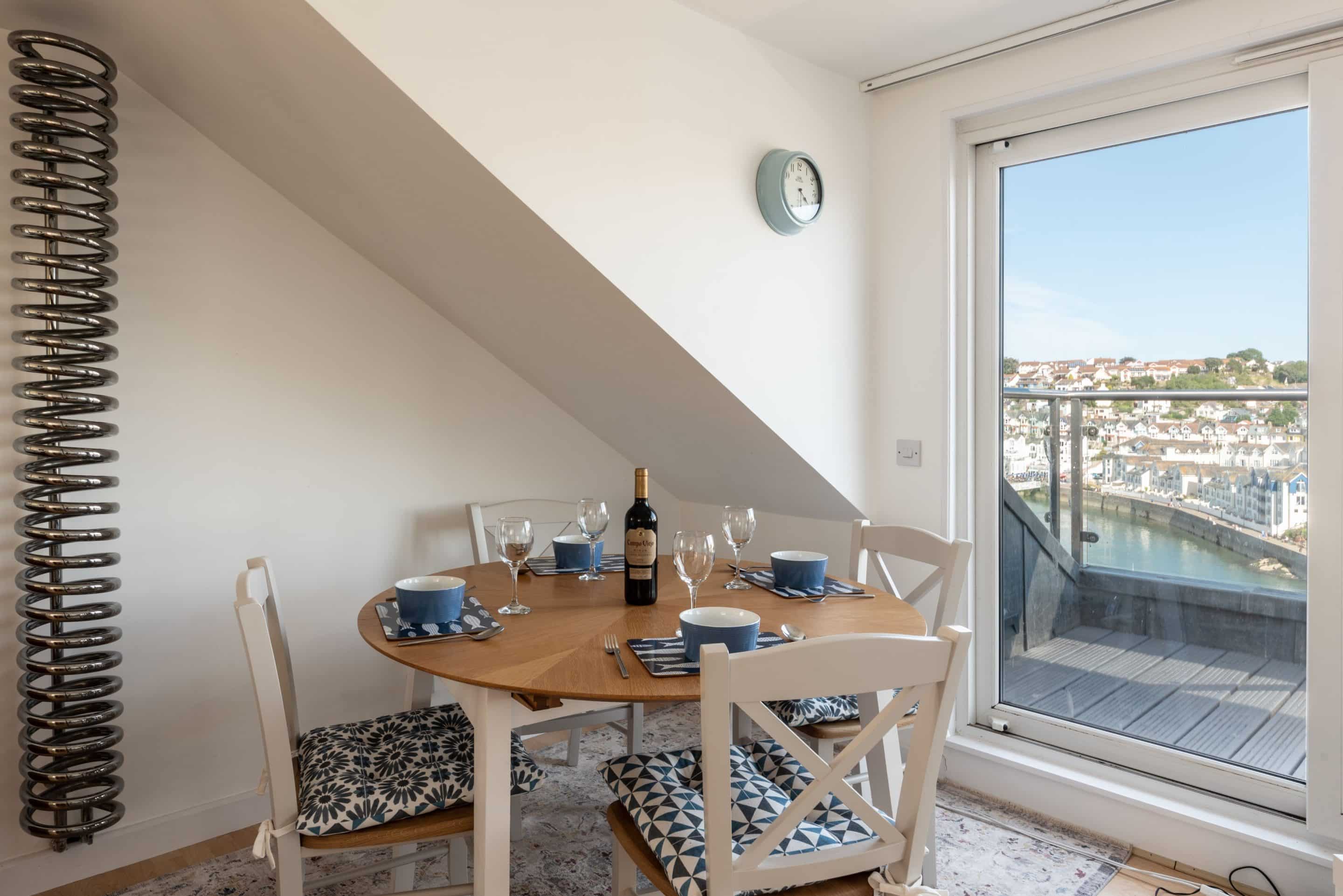 Stunning Views and Outdoor Area: The full-width balcony with bistro-style seating makes it easy to capitalise upon the spectacular views of Brixham's working harbour and marina, offering a perfect spot for al fresco dining, reading, or socialising.